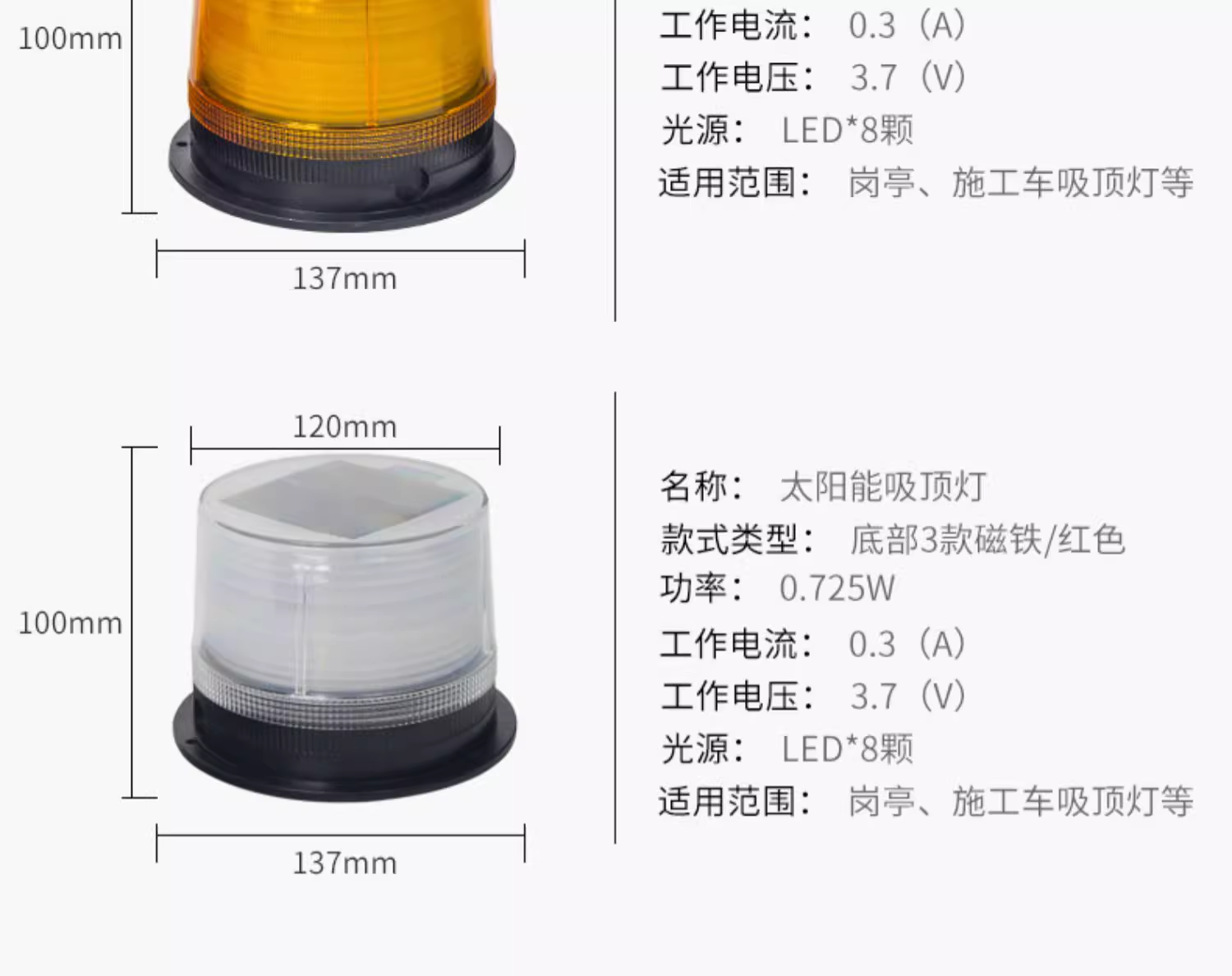 吸顶灯/红蓝双闪020S(底部三块磁铁)