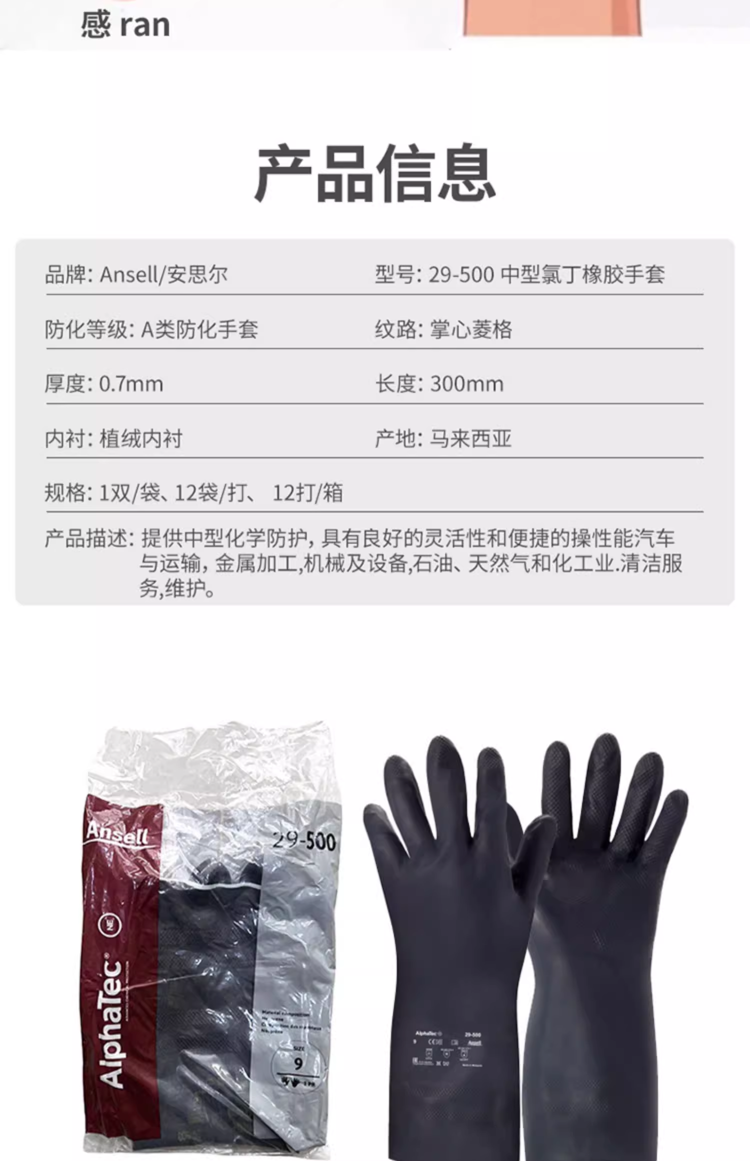 29-500氯丁橡胶防化手套