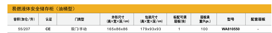 55Gal/207L(油桶型)安全储 存柜